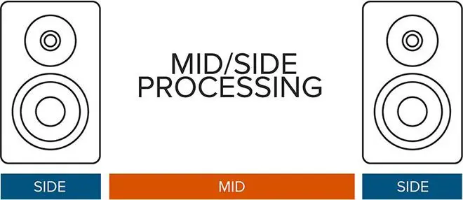 Mid/Side也是一种声道模式,与双声道的左右两通道不同,它是对于两个音响内一个声道(Mid),两个音响外一个声道(Side)。这样比起左右分声道或频率分声道有独特的混音优势。