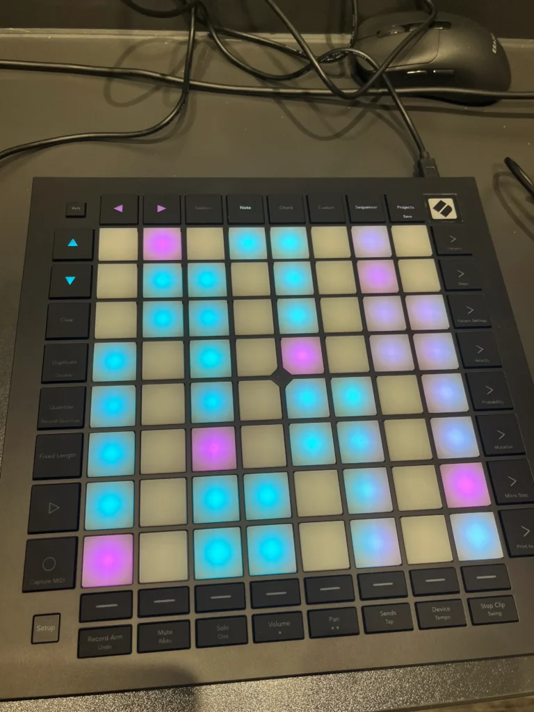 一个19年的老玩意儿了。16年的时候买了Launchpad mk2的版本打了几个灯光效果很酷炫的工程之后就一直用于DrumPad弹和弦,以及和Ableton live一起使用在直播的时候作为通道条的控制器。